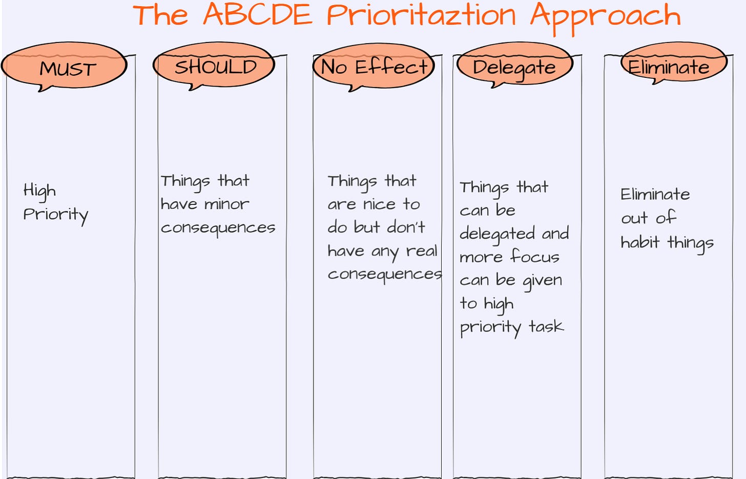 6) The ABCDE ApproachThe primary key to achieving success is focus - channelling all efforts towards a single goal and moving straight towards it without any distractions or deviations. Identify the project that holds the most significance to you and prioritize it with the following approach.
