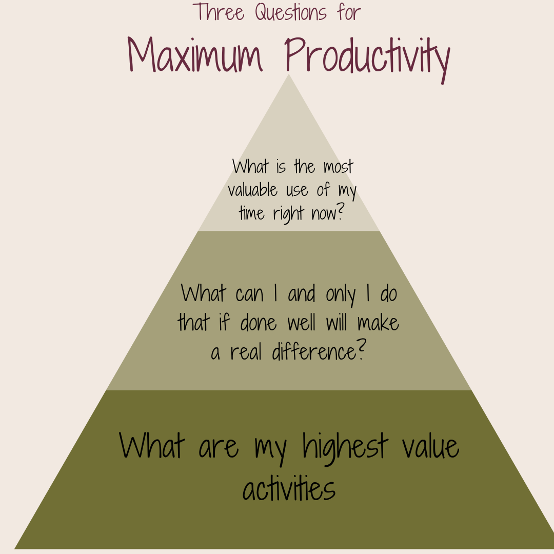 Regularly review your task list and ask, "Which project or activity, if completed excellently and promptly, would have the most positive impact on my work or personal life?" Identify the most important task for each hour and commit to working on it diligently. What's the most valuable use of your time at this moment?