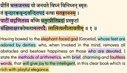 He followed the tradition of India and Bhāskara begins Līlāvatī with an invocatory verse (mangalācaraṇam) bowing down to Lord Gaṇeśa, the prathama-pūjya~ the first one to whom we offer our prayers.
